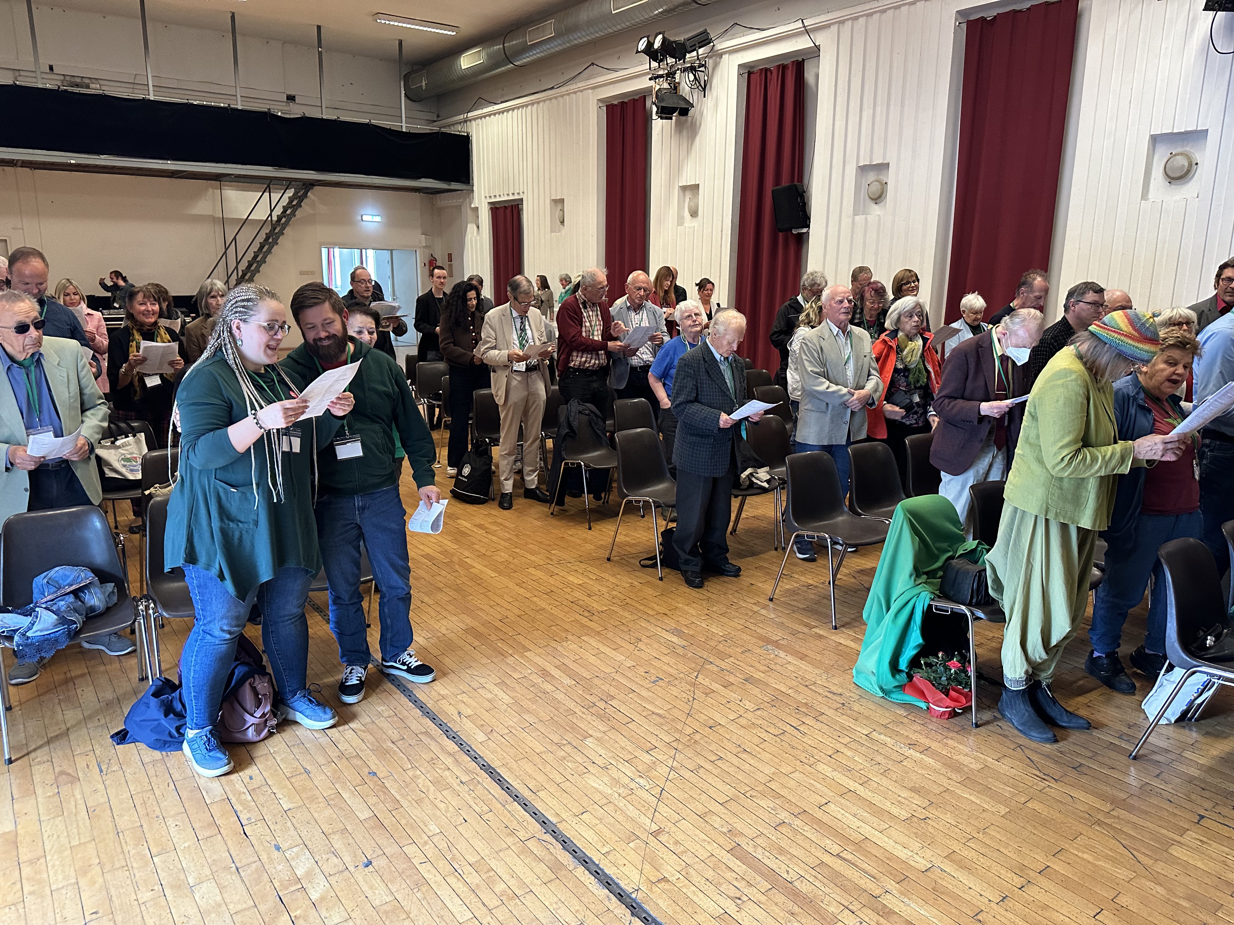 Am Sonntag fand in der Pfarrkirche zur „Heiligsten Dreifaltigkeit“ Graz-Karlau, wenige Gehminuten vom Veranstaltungsort entfernt, eine von Pfarrvikar Dr. Albert Rainer aus Wien sehr würdevoll und ansprechend gestaltete Heilige Messe auf Esperanto statt, anlässlich der am 17. November 2024 erfolgten Seligsprechung des Märtyrers Max Josef Metzger, der von 1915 bis 1927 in Graz als Priester gewirkt hat und aufgrund seiner pazifistischen Überzeugung 1944 vom Nazi-Regime hingerichtet worden ist. 1920 gründete er gemeinsam mit niederländischen Esperantisten die Asocio Internacio Katolika mit Sitz in Graz und redigierte hier auch von 1921 bis 1924 die Esperanto-Zeitschrift „Katolika Mondo“. Bereits in seiner Begrüßung anlässlich der offizielle Eröffnung am Europatag, den 9. Mai, verwies Ewald Schick, der Präsident der Steirischen Esperanto Gesellschaft wie auch des Österreichischen Dachverbandes AEF (Austria Esperanto Federacio) auf die Bedeutung von Max Josef Metzger für Esperanto und die Stadt Graz. Konsequenterweise wurde auch die erste Zeile der Metzger-Hymne zum Motto des Kongresses gewählt: „Es mögen die Völker in Frieden leben.“
