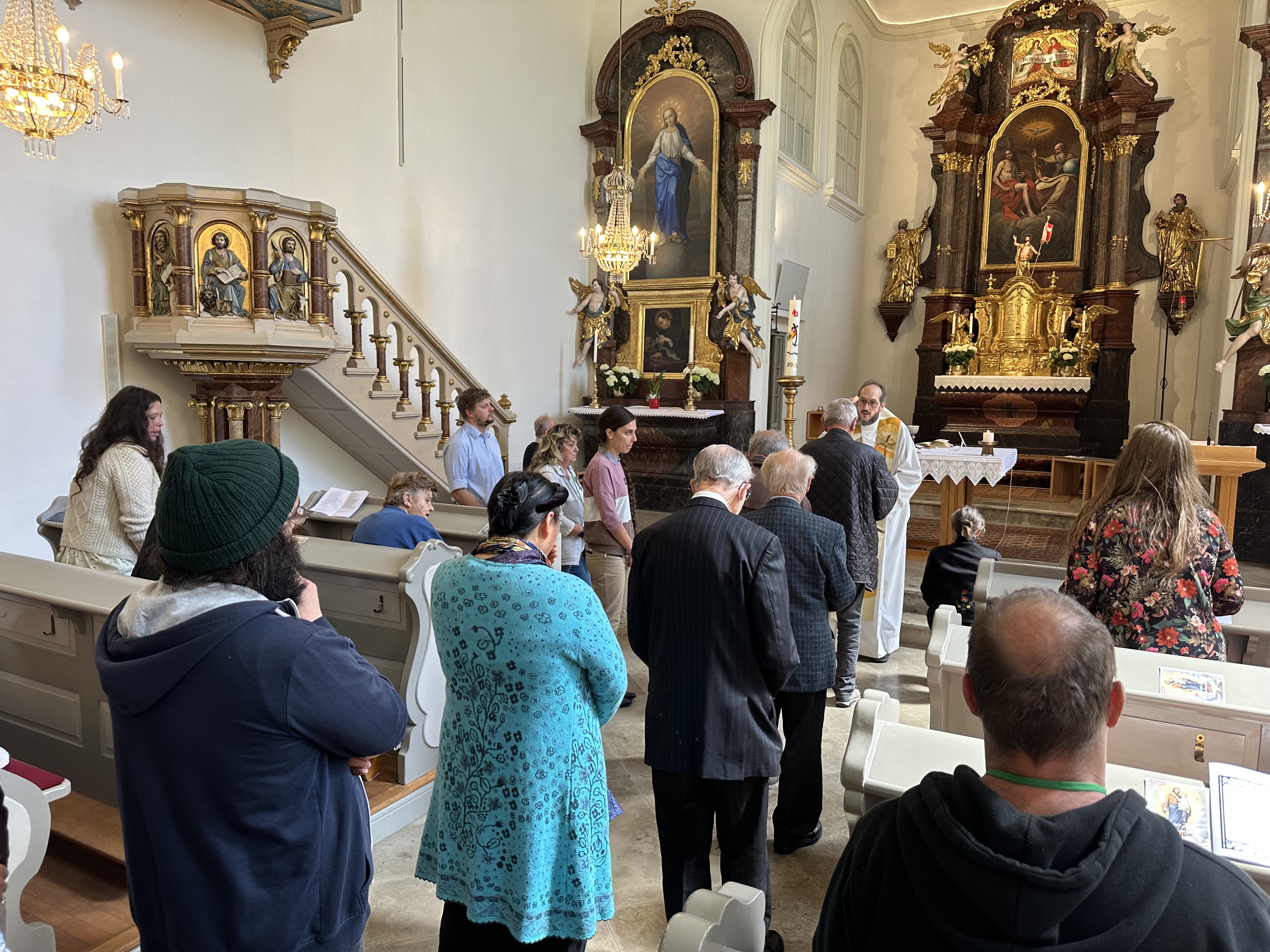 Dimanĉe okazis en la preĝejo de la “Plej Sankta Triunuo” en Graz-Karlau – kelkajn minutojn piede de la kongresejo – solene kaj alloge celebrita Sankta Meso en Esperanto, gvidita de d-ro Albert Rainer el Vieno. Ĝi estis dediĉita al la beatproklamo, okazinta la 17an de novembro 2024, de la martiro Max Josef Metzger, kiu inter 1915 kaj 1927 agis kiel pastro en Graz kaj pro sia pacifisma konvinko estis ekzekutita de la nazia reĝimo en 1944. En 1920 li fondis kune kun nederlandaj esperantistoj la Asocio Internacio Katolika kun sidejo en Graz kaj redaktis inter 1921 kaj 1924 la Esperanto-revuon “Katolika Mondo”. Jam en sia salutparolo dum la oficiala malfermo okaze de la Tago de Eŭropo la 9an de majo, Ewald Schick, prezidanto de la Esperanto-Societo Stirio kaj ankaŭ de la Aŭstria Esperanto-Federacio (AEF), substrekis la gravecon de Max Josef Metzger por Esperanto kaj la urbo Graz. Tial ankaŭ la unua verso de la himno de Metzger estis elektita kiel moto de la kongreso: “La popoloj vivu en paco.”